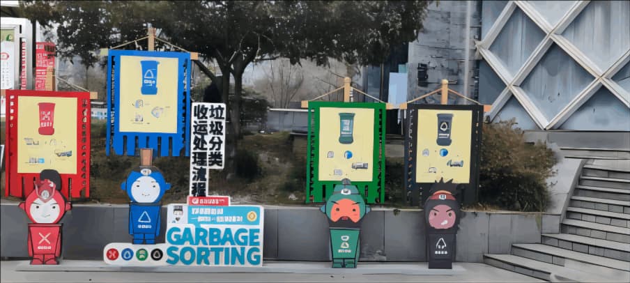 该项目服务范围包括遂宁高新区管委会办公楼、鹭栖湖学校、五里垭社区、七里桥安置小区、景宸府、九樾府、华翔城五期、望江山等物业小区,共服务约6509户居民、1343名师生。本项目针对性地打造了若干个垃圾分类特色示范场景,其中包括七里桥全场景分类文化小区、望江山垃圾分类文化宣传长廊、华翔城垃圾分类创意文化街、社区活动中心党建引领垃圾分类文化提升等特色场景,将这些场景进行了有机整合,形成了连片示范区。